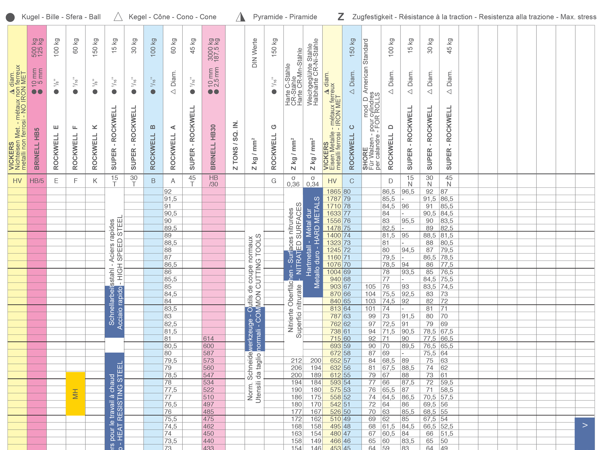 Campo di utilizzazione delle varie scale Rockwell
